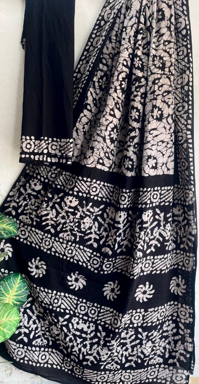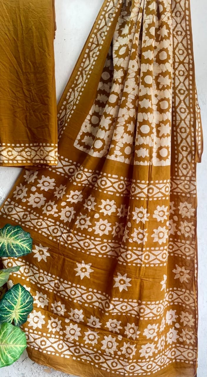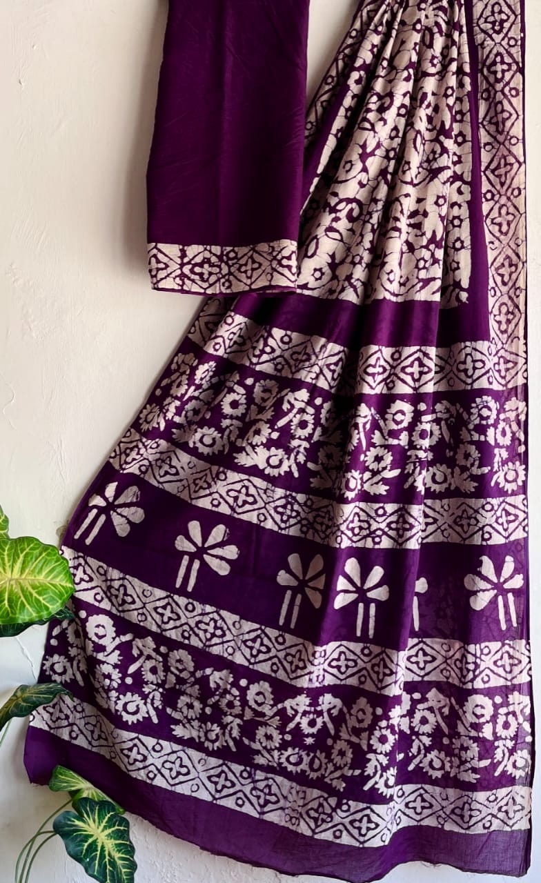 *Order now and experience the beauty of hand-block printed mulmul cotton sarees! 💜👗*